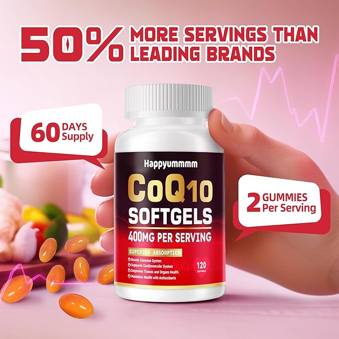 - OPTIMAL COMBINED OMEGA-3 - Every soft gel of Happyummmm CoQ10 contains 60 mg of omega-3s, which are imperative to promoting heart health. Omega-3s can improve sleep quality, support the eyes, skin, and brain health. Better absorption, better taste, and no fishy burps!