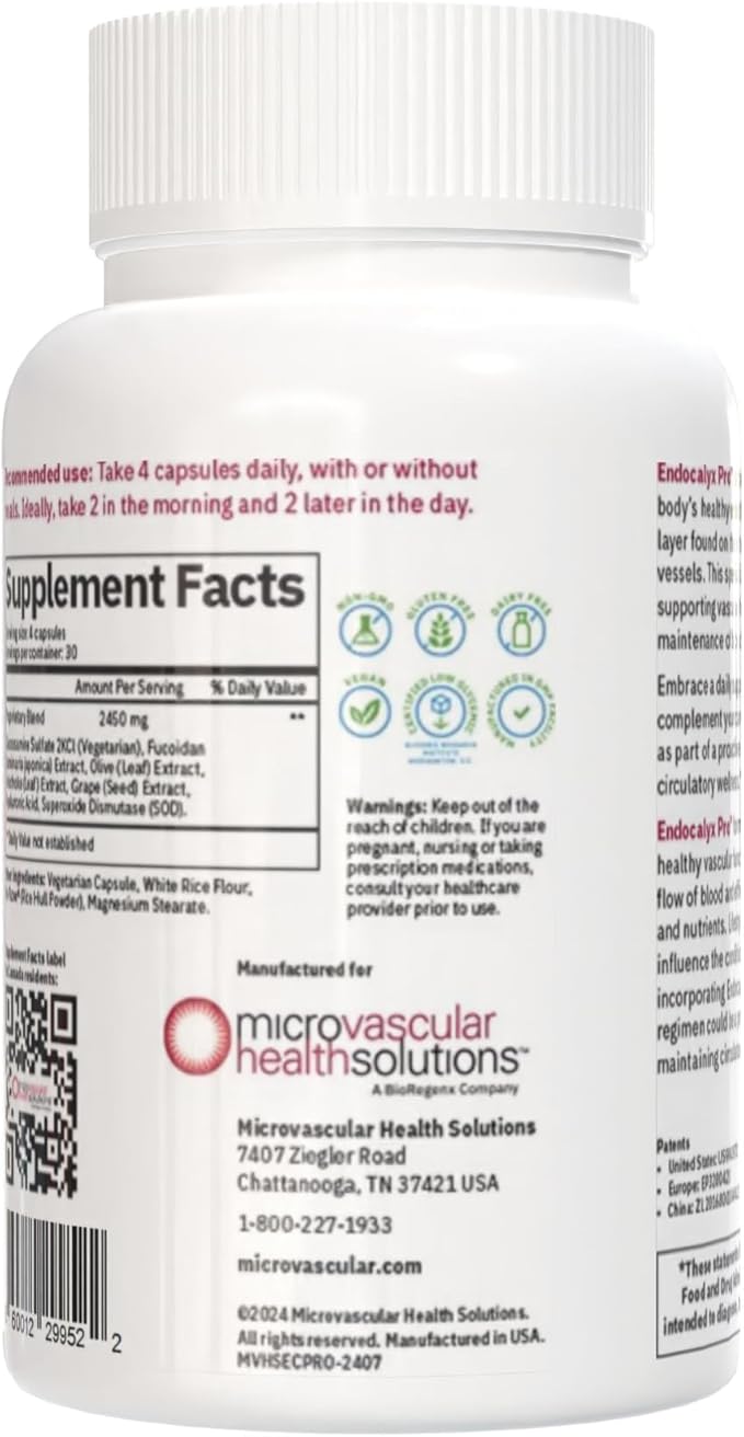- Endocalyx Pro promotes healthy organs associated with vascular health, including the heart, brain, kidneys, lung, muscle, skin and eyes