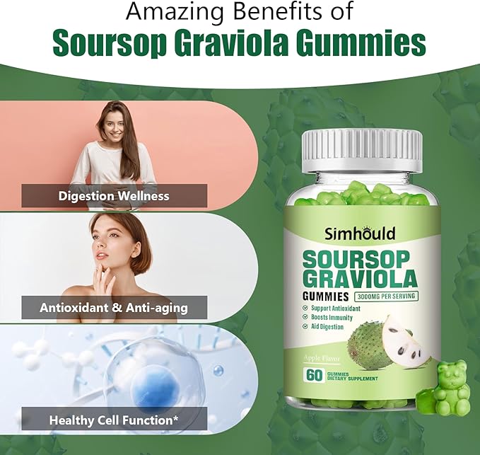 - EXTRA STRENGTH: Simhould took no shortcuts when creating this soursop graviola gummies formula, in addition to immune-supporting soursop for women and men, our formula also contains vitamin C and zinc. A simple, pure combination of ingredients, maximizing the effectiveness and benefits of soursop. The inclusion of Vitamins C and Zinc not only strengthens the immune system but also Supports Immunity, Liver & Digestive, and let you feel the power of health while enjoying delicious food!