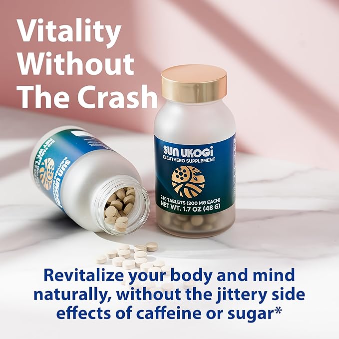 Sun Chlorella Sun Ukogi Organic Eleuthero Root 200 mg Siberian Ginseng Supplement - Natural Adaptogen Well Being & Endurance Supplement for Women & Men - Non-GMO - 240 Tablets