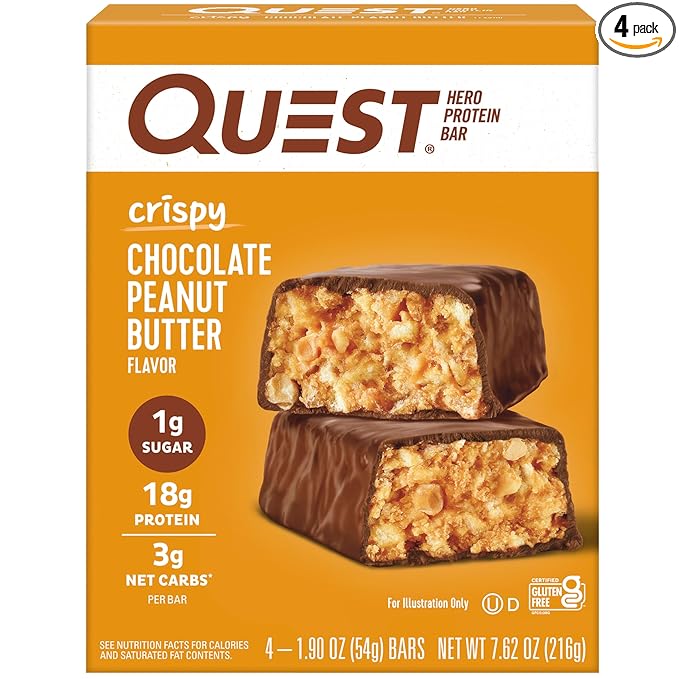 - TREATS THAT TRAVEL WITH YOU: Take Quest Crispy Chocolate Peanut Butter Hero Protein Bars with you in your backpack, purse, car console, cup holder, gym bag or wherever your adventures take you.