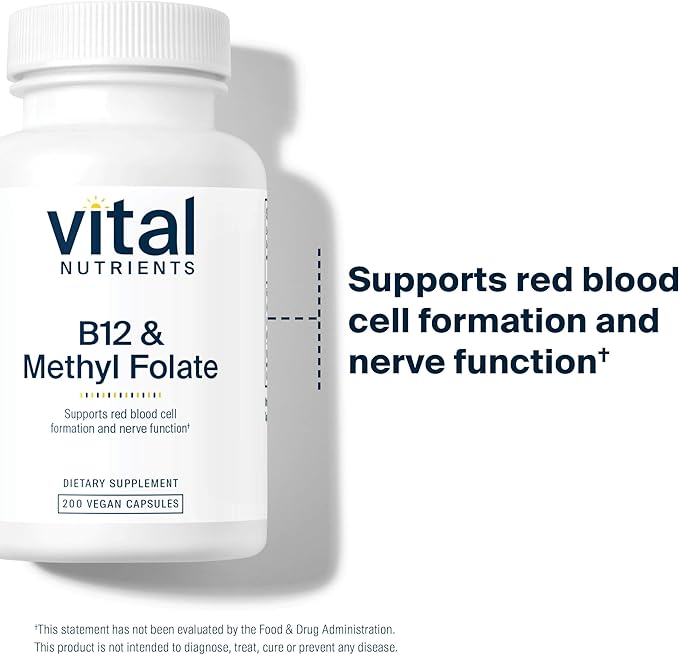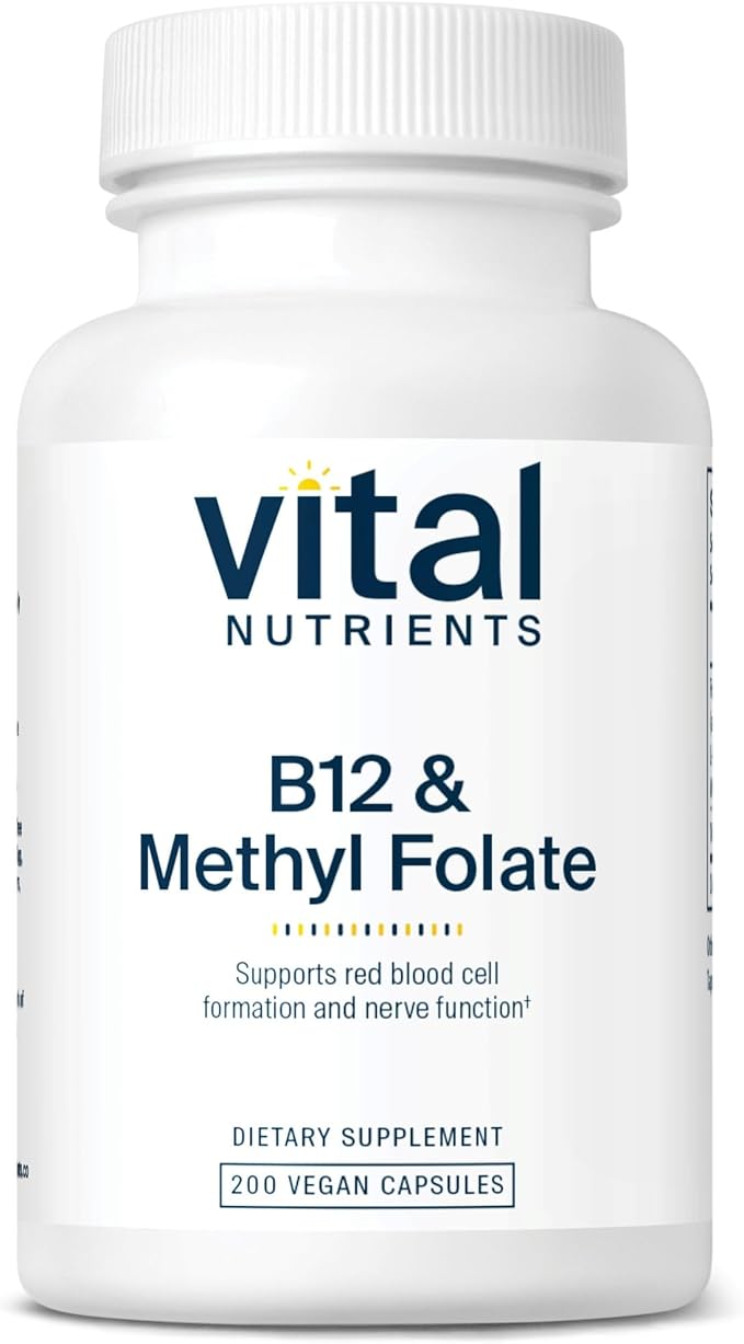 Vital Nutrients Vitamin B12 & Methyl Folate | Vegan Methylated Folate and B12 Supplement | Supports Nervous System & Metabolism* | High-Potency B12 Vitamins * | Gluten, Dairy, Soy Free | 200 Capsules