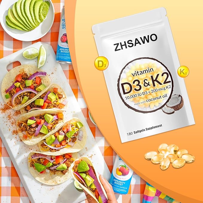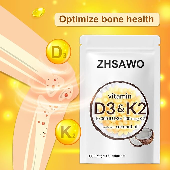 2-in-1 Vitamin D3 K2 Supplement Softgel,D3 K2 Vitamin 10000 iu Aiding in Calcium Absorption (180pcs)