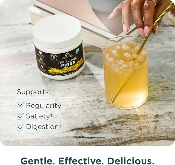 Ancient Nutrition Organic Fiber Powder, Pineapple Mango, Soluble Fiber from Acacia & Konjac Root, Supports Digestive Health, Reduces Bloating, 6.4 oz