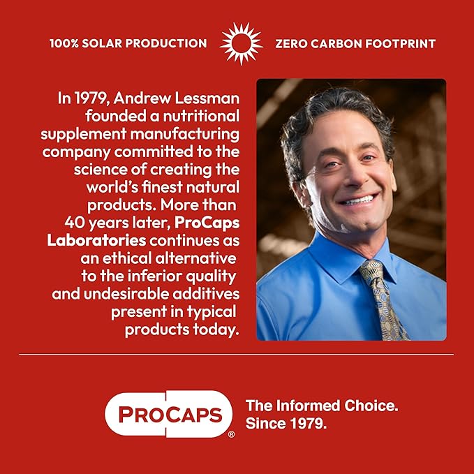- ETHICAL & ECO-FRIENDLY. ZERO CARBON FOOTPRINT – Uniquely committed to your health and the health of the planet, ProCaps’ facilities are 100% Solar Powered with a Zero Carbon Footprint and an LEED GOLD green building status. ALL ProCaps bottles are made from 100% recyclable post-consumer resin. Plus, Andrew Lessman and ProCaps are the largest donor of prenatal vitamins in the world (over 1.5 billion capsules donated to date). ProCaps, the Informed Choice for Nutritional Supplements.