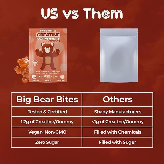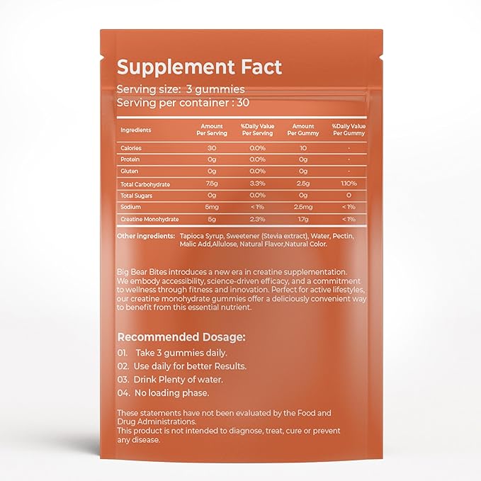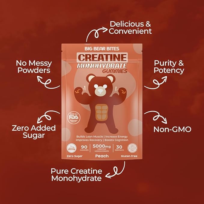 - ๐๐ผ๐ป๐๐ฒ๐ป๐ถ๐ฒ๐ป๐ ๐๐ฎ๐ถ๐น๐ ๐๐ผ๐๐ฒ ๐๐ถ๐๐ต ๐๐ ๐๐๐บ๐บ๐ถ๐ฒ๐ ๐ฝ๐ฒ๐ฟ ๐๐ฎ๐ด: Each bag of Big Bear Bites creatine monohydrate gummies contains 90 delicious pre workout gummies, providing a full 30 servings. Simply take 3 gummies a day to meet your daily creatine needs, making it easy to incorporate into your routine without the need for measuring creatine monohydrate powders or swallowing creatine pills.