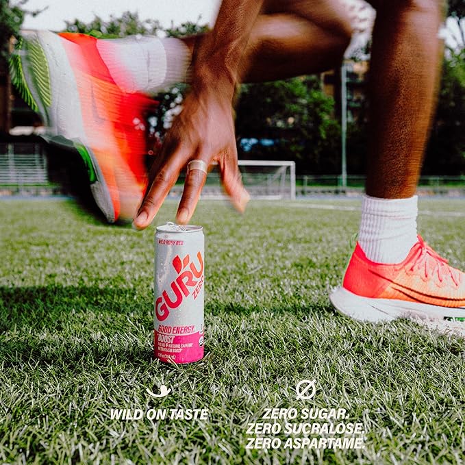 - 140 MG OF NATURAL CAFFEINE THAT LASTS: Use as pre workout drinks or anytime you need a pick me up. GURU Zero has 140 mg of caffeine per can, supports physical vitality, and provides sustained energy with naturally occurring caffeine from green tea.