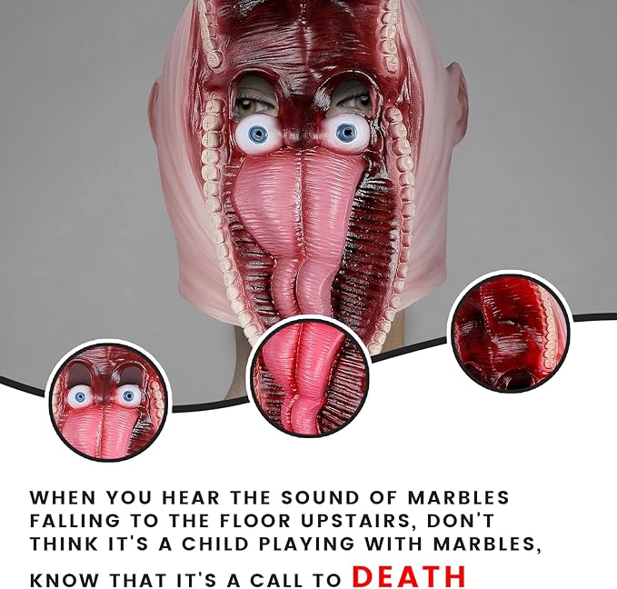 - 【Scary Barbara Mask】Barbara mask is designed to restore the movie very well, with a bloody mouth and eyes on the tongue. Wearing this creepy mask will scare people's spines.
