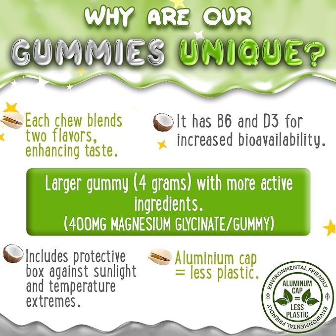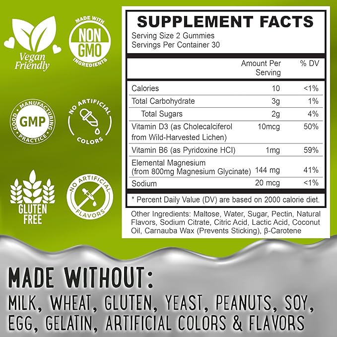 - Gentle and Effective Magnesium Support for All Ages: Each magnesium glycinate gummy delivers 400mg of magnesium glycinate with vitamin B6 & D3, offering enhanced absorption to support muscle health, relaxation, and restful sleep for the whole family.