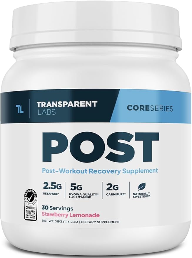 Transparent Labs Post - Post-Workout Recovery Muscle Builder with L-Glutamine, Beta-Alanine and BetaPure Betaine Anhydrous for Muscle Recovery and Muscle Building - 30 Servings, Strawberry Lemonade