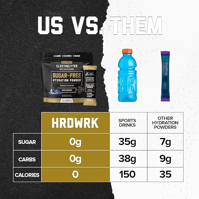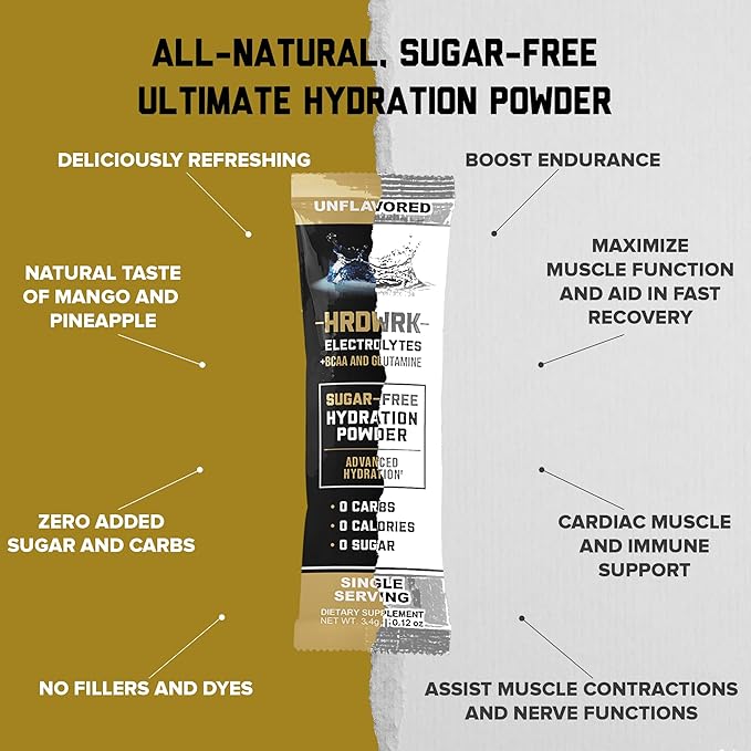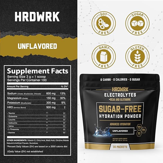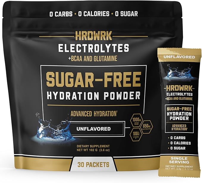 HRDWRK Electrolytes Powder Packets with Magnesium, Potassium Sodium, Keto Hydration Packets - BCAA Electrolyte Powder Packets with Glutamine, 30 Electrolytes Powder Packets Sugar Free (Unflavored)