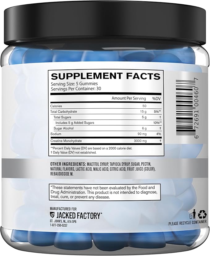 Jacked Factory Creatine Monohydrate Gummies (3g per 5 Gummies) - Creatine Gummies for Muscle Growth, Strength, Enhanced Energy & Improved Athletic Performance - 150 Gummies, Blue Raspberry