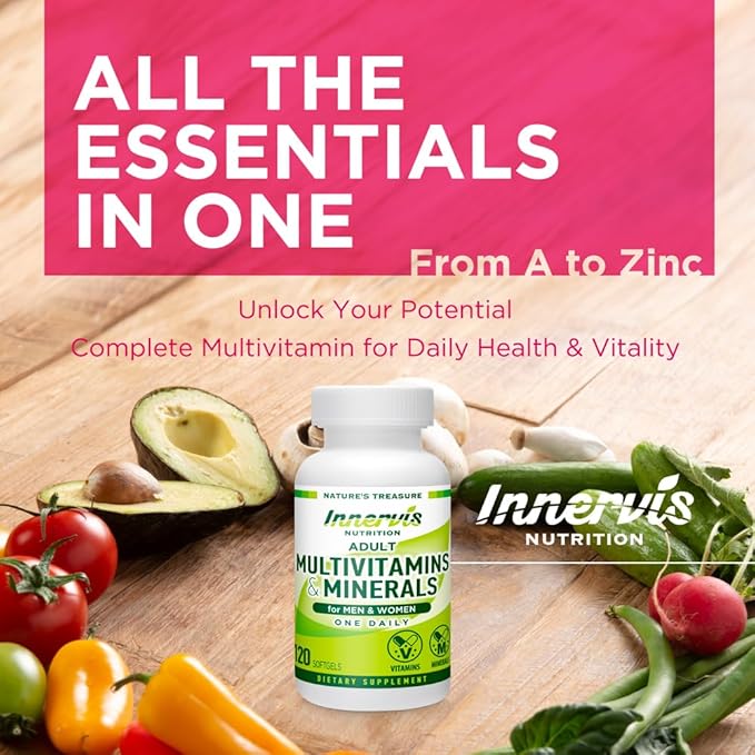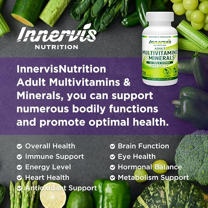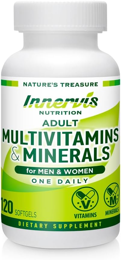 - ADULT MULTIVITAMINS & MINERALS – Innervis Nutrition Adult Multivitamins & Minerals is expertly formulated for adults of all ages to receive adequate daily nutrients needed to stay healthy. Made to support healthy body function in the form of easy to swallow tablets with all ingredients packed into one small oral capsule. This comes with a 4-month supply of capsules, using only top quality ingredients and contains NO fillers, GMO, excipients, binders, additives or artificial ingredients.