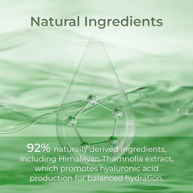 - Natural Ingredients Formula: With 92% naturally derived ingredients, including Himalayan Thamnolia extract, which promotes hyaluronic acid production for balanced hydration.