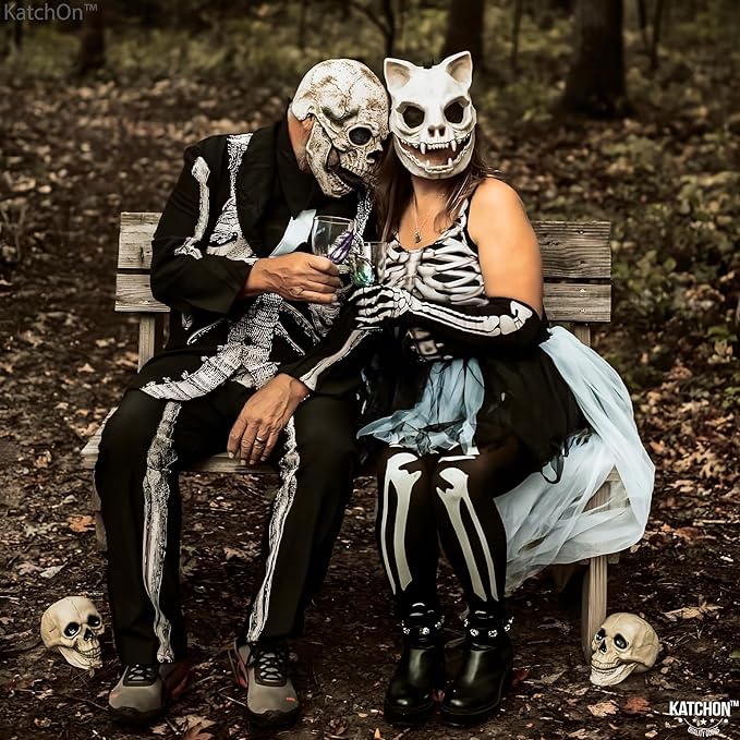 KatchOn Creepy Halloween Skull Mask Full Head with Movable Jaw - Realistic Latex Skull Mask Costume for Adults