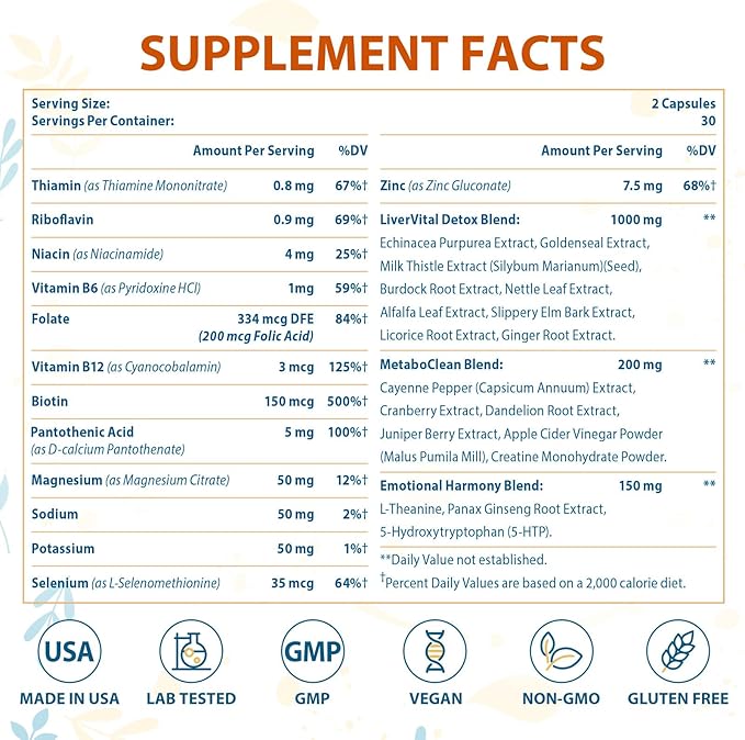 - NATURAL TOXINS CLEANER: Our detox cleanse capsules are crafted with a scientifically formulated blend of natural ingredients, providing a gentle yet effective approach to toxin elimination. Free from fillers, binders, and artificial ingredients, our detox cleanse product offers a pure and natural solution for detoxification, ensuring a clean and safe detox experience.