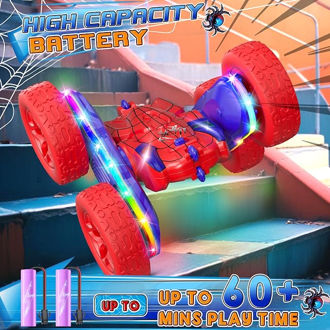 Spider Remote Control Car,RC Cars with Sides Light Strip and Headlights,Double Sided 360 Flips Rotating RC Stunt Car,2.4Ghz All Terrain Toys for Ages 5-7 Kids Toy for Boys Girls Birthday Gift