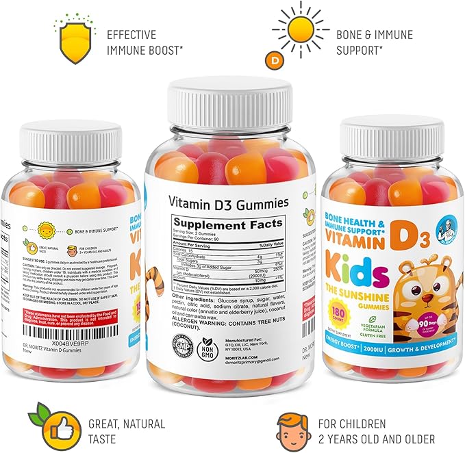 - Easy & Yummy Way to Boost Immunity - Dr. Moritz kids vitamin d3 gummies have a delicious multi-fruit flavor (mango, peach, strawberry), making these chewable vitamin d for toddlers the most convenient way to get your expert-recommended daily vitamin D3.