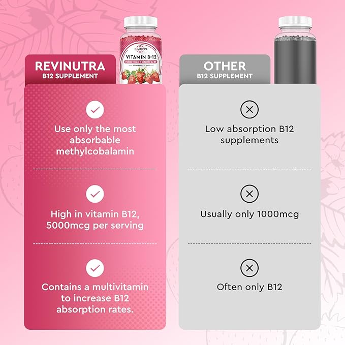 - BRAIN SUPPORT: stay smart & healthy. b12 vitamins gummies unbeatable support for your health goals. Unleash the power of 5000 mcg of vitamin B12 gummy! Red & tasty vitamins with Strawberry flavor support cognitive functions and memory at a high level as well as maintain brain energy & functioning