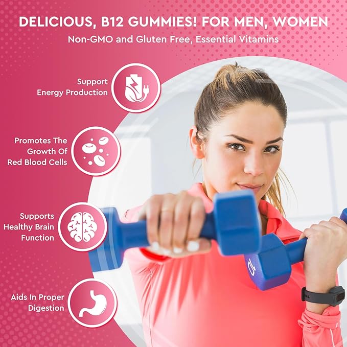 - BRAIN SUPPORT: stay smart & healthy. b12 vitamins gummies unbeatable support for your health goals. Unleash the power of 5000 mcg of vitamin B12 gummy! Red & tasty vitamins with Strawberry flavor support cognitive functions and memory at a high level as well as maintain brain energy & functioning