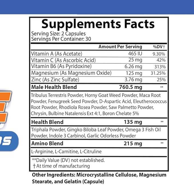 - MEN’S HEALTH HERBAL BLEND: Includes potent herbal extracts such as Ginkgo, Saw Palmetto, Fenugreek and Maca to enhance vitality and energy levels. Maca is a well known adaptogen that helps increase energy and endurance. Our proprietary blend helps support men's physical performance and overall vitality.