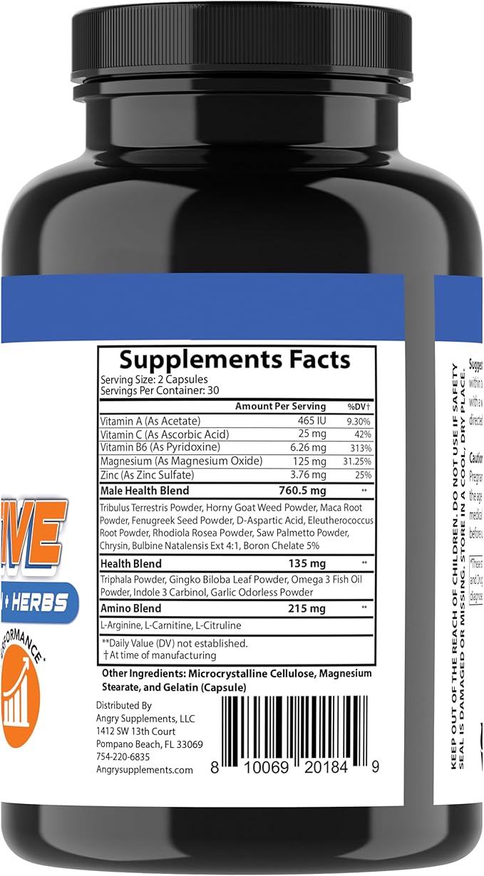 - IMMUNE SUPPORT: Angry Active provides immune-boosting nutrients like Vitamin C, Vitamin B6, and Zinc to help strengthen the body's natural defenses and keep your immune system stronger than ever! Essential vitamins along with herbal extracts contribute to a healthy immune system, helping men stay resilient against seasonal challenges.
