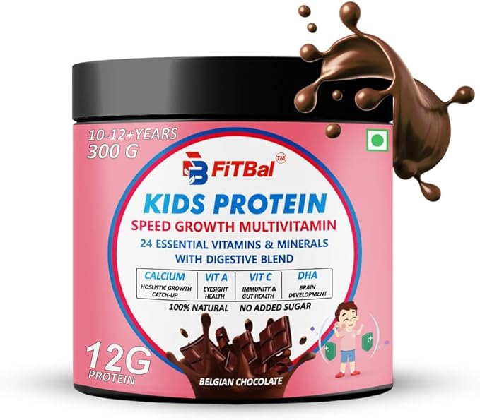 - Speed Growth Multivitamin: Specially formulated to support rapid growth and development in children. FiTBal Kids Protein provides a balanced blend of essential nutrients to help your child thrive.