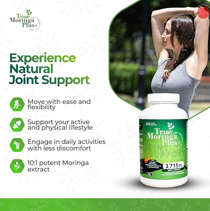 - A Symphony of Joint Support: True Moringa Plus+ offers a multi-pronged approach to soothing joint discomfort with powerful ingredients including Turmeric, Ginger, and Boswellia. This all natural formula for chronic stiffness helps with joint mobility and promotes overall well-being throughout the body.