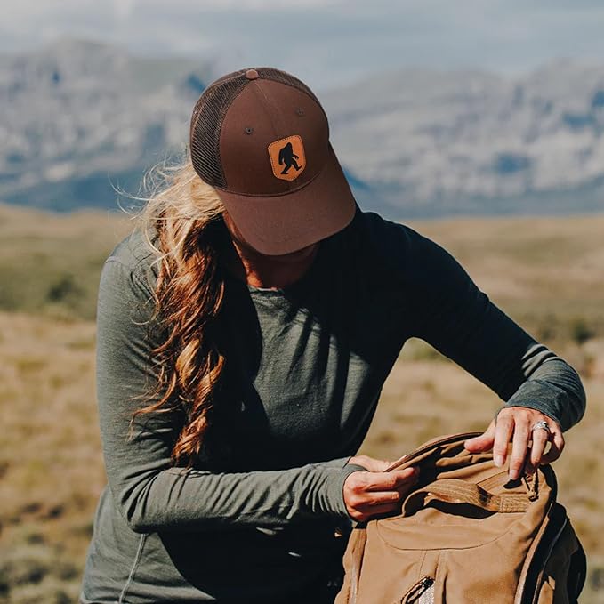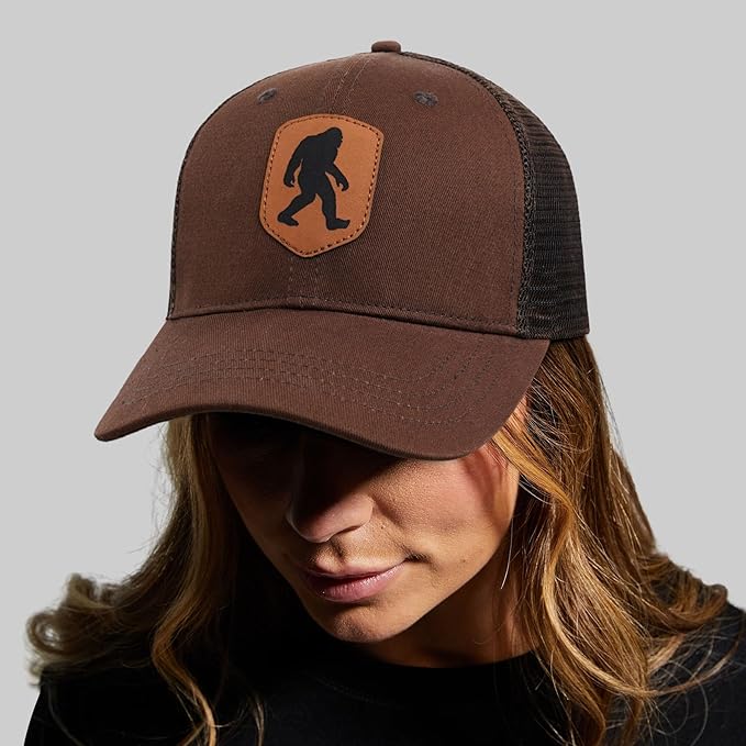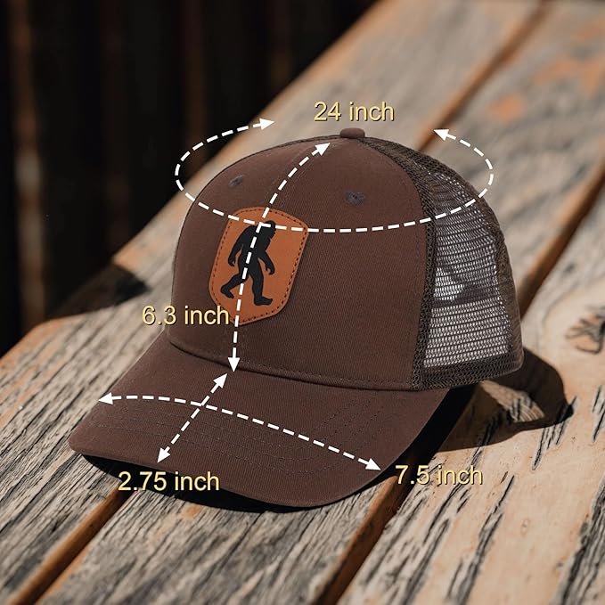 Mesh Bigfoot Hat Leather Cap for Men- Great Snapback Closure Sasquatch Hat for Hunting & Hiking