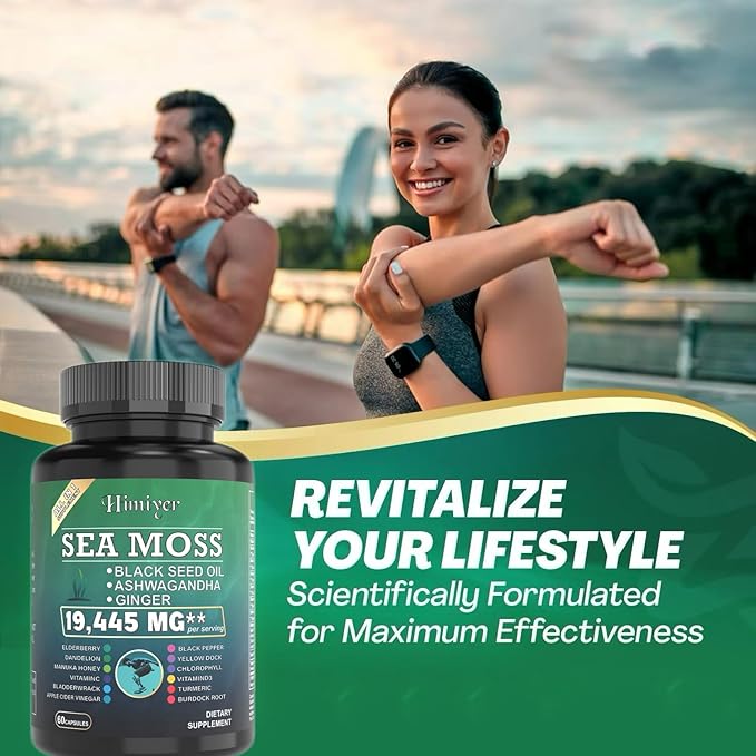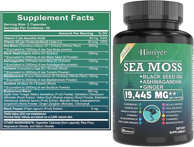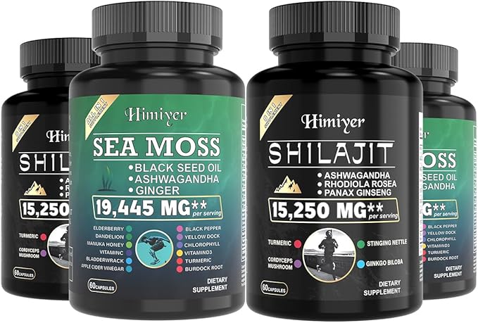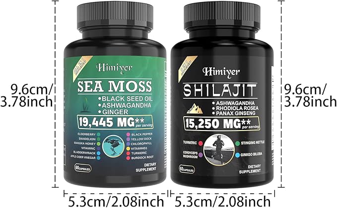 2pcs, Ultimate Wellness Bundle - Boost Energy, Immunity & Brain Function with 7000mg Sea Moss, 4000mg Black Seed Oil, 2000mg Ashwagandha, 9000mg Ginger & Shilajit, Vegan-Friendly Supplement