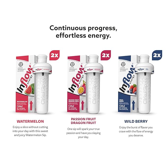 Cirkul Inflow Energy Flavor Cartridge Variety Pack with Caffeine, 6-Pack (2 Passion Fruit Dragon Fruit, 2 Wild Berry, 2 Watermelon)