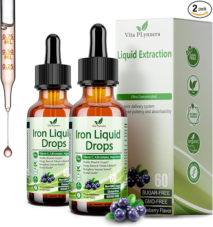 - 4 FL OZ BIG CAPACITY FOR LONG-TIME USE: This high potency liquid Iron drops is 60ml capacity. 2 packs 60-days supply. Liquid iron drops for better absorption by your body. Get your daily dose of essential nutrients in a fun and delicious way.