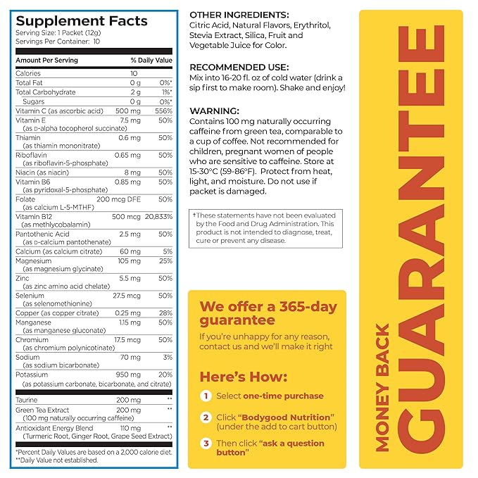- CONVENIENT & COMPATIBLE: Includes 10 easy-to-use powder packets. Mix with 16-20 oz of water for a refreshing, energizing boost. Perfect for keto, low-carb, paleo, gluten-free and vegan lifestyles. Non-GMO, soy-free, and dairy-free.