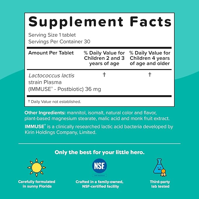 - Daily immune support for kids: Each melty tab contains a clinically researched postbiotic to support the body’s natural defenses at the cellular level; with daily use you can support healthy days all year round