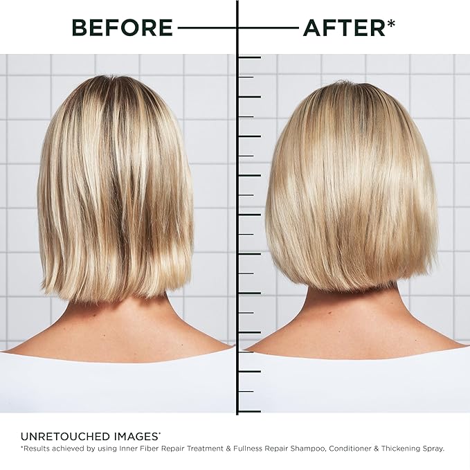 - System of Volumizing Hair Products: See visibly fuller, thicker hair, with up to 2X less hair fall due to breakage from brushing vs a non-conditioning shampoo with use of system of inner fiber repair treatment and fullness repair shampoo and conditioner