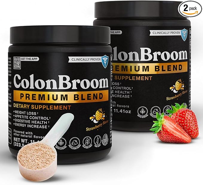 ColonBroom Premium Weight Management Supplement (Strawberry) - Colon Broom Psyllium Husk Fiber Powder Drink - Gluten Free, Non-GMO Colon Cleanse for Bloating Relief & Gut Health, 100 Servings