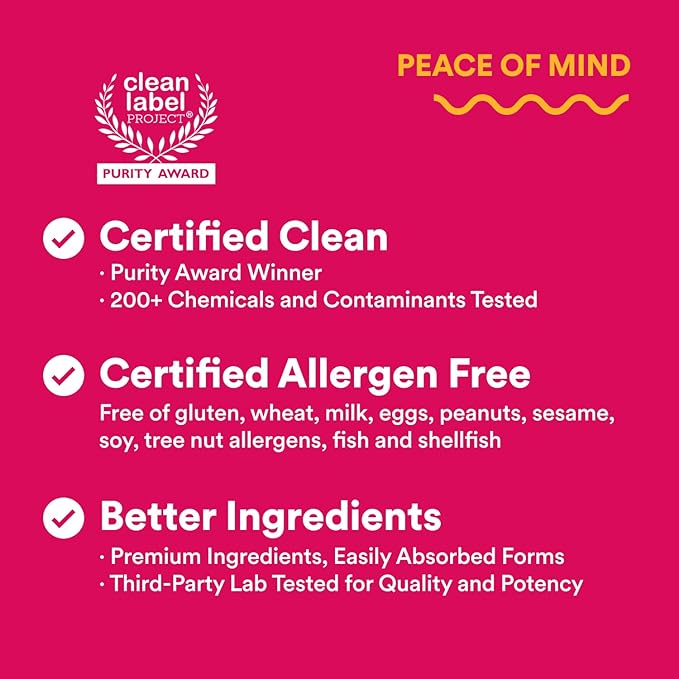 - CERTIFIED CLEAN, THIRD PARTY TESTED FORMULA: Our women’s vitamins are a Clean Label Project Purity Award Winner! Subjected to strict testing for 200+ contaminants and chemicals, so you can be sure you're taking high quality vitamins you can trust