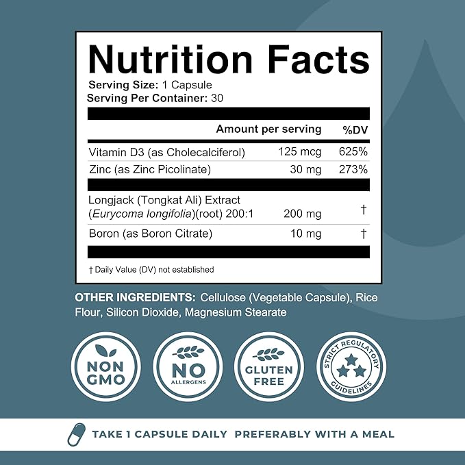 - Special Ingredients : Vitamin D3, Boron Citrate, Longjack Tongkat Ali, Zinc Picolinate