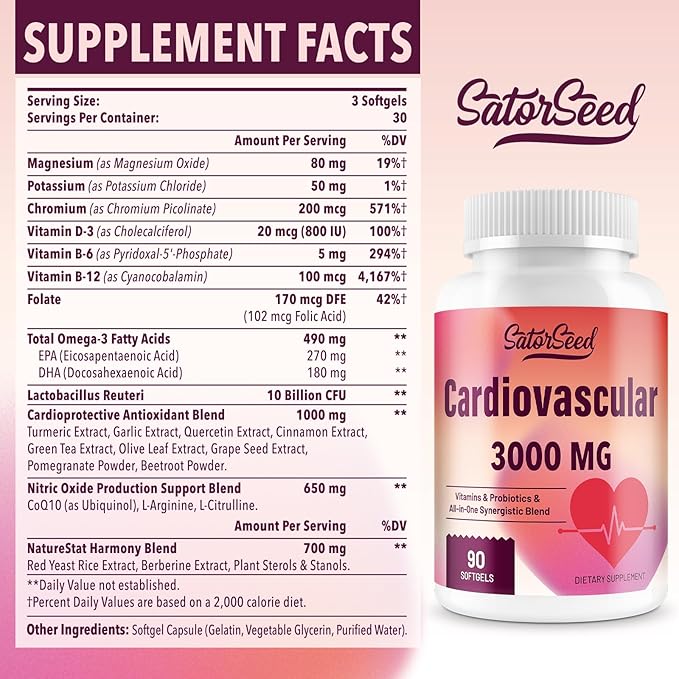 Cardiovascular Supplement 3000MG Multi-Vitamins, Probiotics, Omega-3 & CoQ10 Synergistic Blend for Adults (2 Bottle)