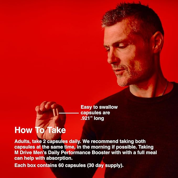 Mdrive Men's Daily Performance Complex Support Supplement - Ashwaghanda, Tongkat Ali, Ginseng, Maca & Vitamin D, 60 Capsules, 30 Day Supply