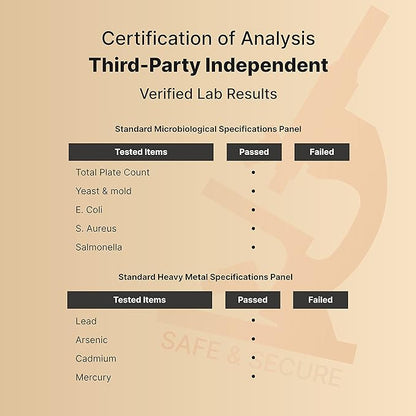 - Authentic non-GMO ingredients that are free of wheat, soy, dairy, gluten, eggs, fish, shellfish, peanuts, and tree nuts. All products are also 3rd party lab tested for safety and potency.