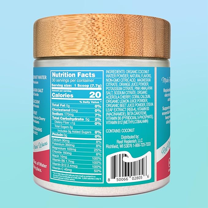 - ELECTROLYTE SUPPORT: Reef Replenish grapefruit electrolytes powder includes five essential electrolytes—sodium, potassium, magnesium, calcium and chloride—to maintain ideal hydration levels and electrolyte balance.