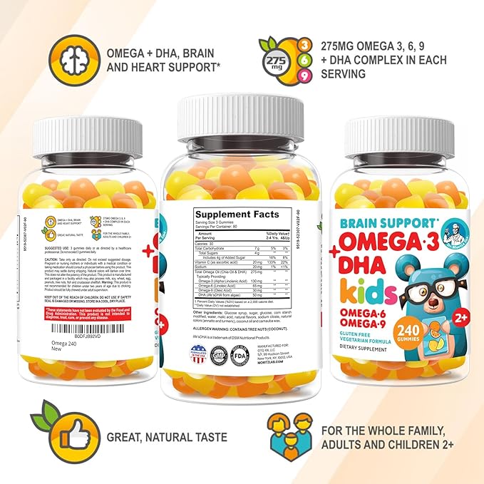 - NOW IN 240 COUNT: Stay stocked on your favorite omega 3 supplement for kids! With 240 delicious gummies, your little ones can enjoy our omega 3 6 9 gummies daily, without worry of running out.