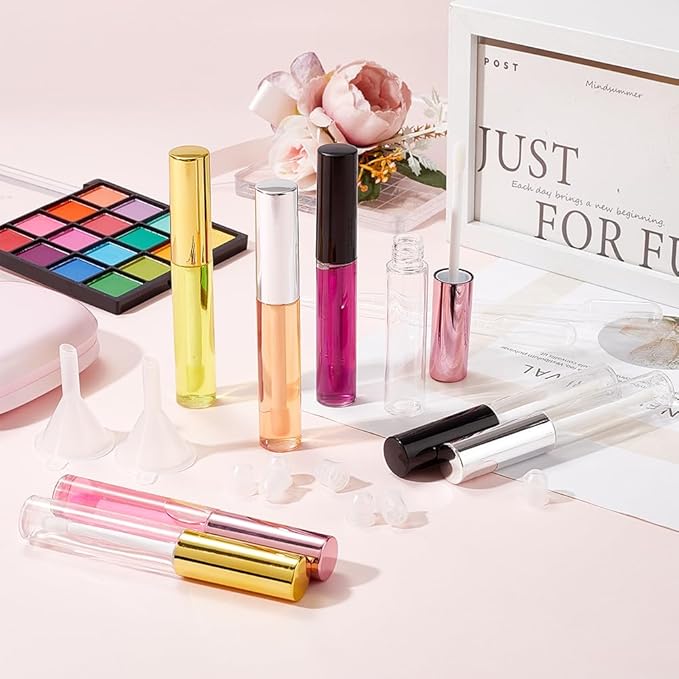 - 8PCS 4 COLORS LIP GLOSS TUBES: You will get 8pcs 10ml empty lip gloss tubes in 4 colors(pink, black, silver, gold), each color 2pcs, comes with 2pcs 2ml dropper pipettes and 2pcs funnels, enough to meet your daiy DIY need