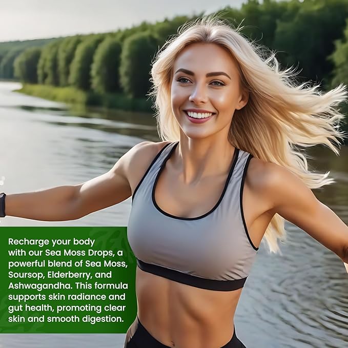 Sea Moss Liquid Drops Supplement, Irish Sea Moss with Soursop Black Elderberry Ashwagandha Burdock Root - Multivitamins Seamoss Liquid Drops Support Antioxidant, Immune, Skin Gut Health, 2 Fl Oz