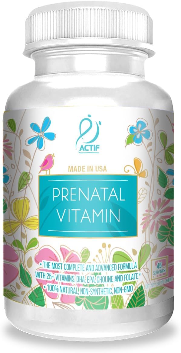 ACTIF Organic Prenatal Vitamin with 20+ Vitamins, Omega-3, DHA, Organic Herbs, Non-GMO, Made in USA, 90 Count