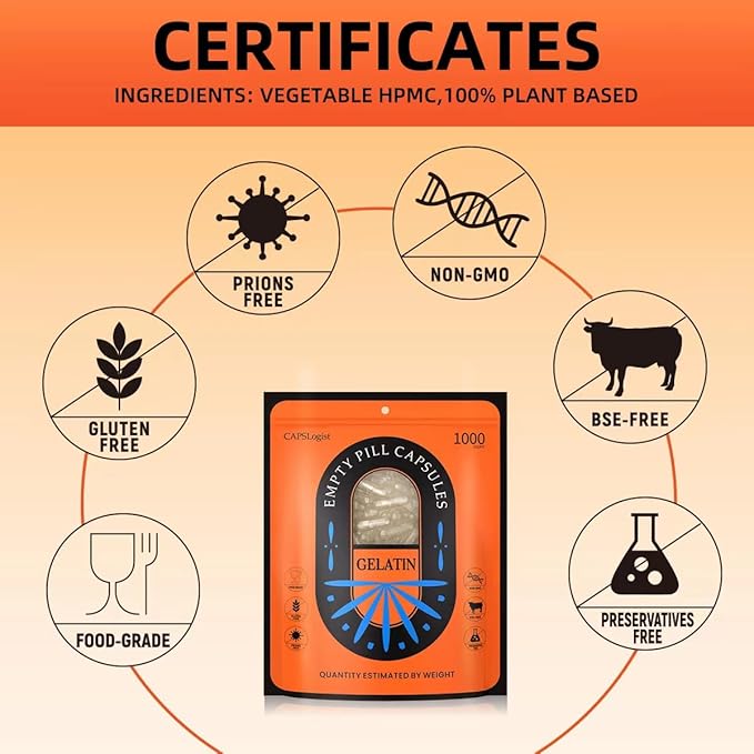 - EASY TO FILL - Our size 0 empty gelatin capsules are designed with tough anti-break conisnap rounded ends to make precise filling easier than ever. Our Gelatin capsules are also compatible with capsule filling machine.