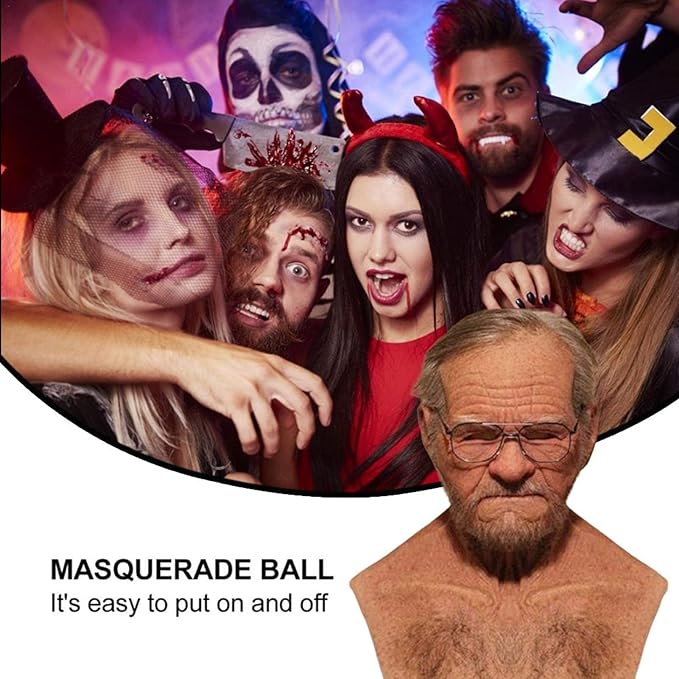 - Realistic Design: This mask showcases a meticulously crafted aged face with realistic wrinkles and age spots, delivering a truly scary and authentic look.