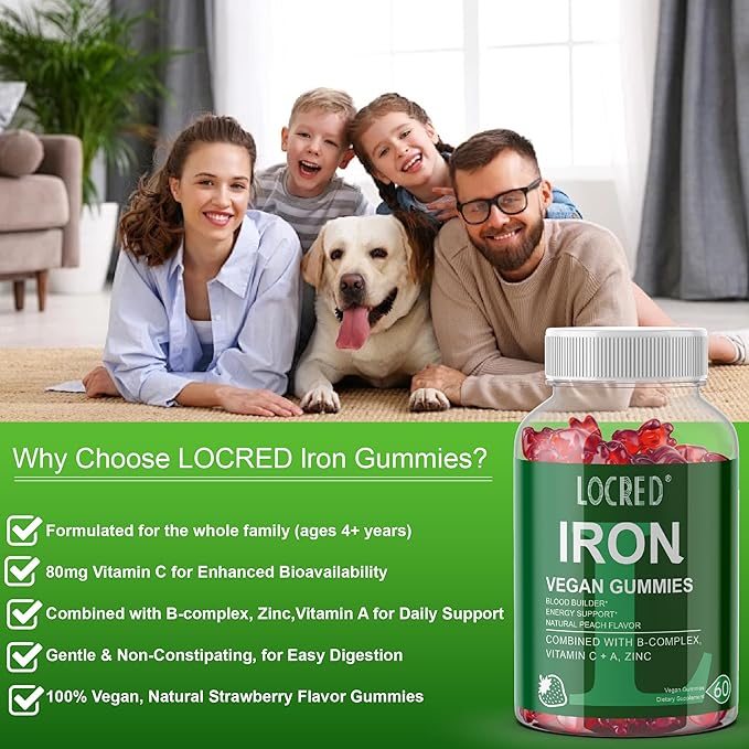 Vegan Iron Gummies,Multivitamin with Iron, Folate,Zinc for Man and Women,Strawberry Flavor (60 Ct)