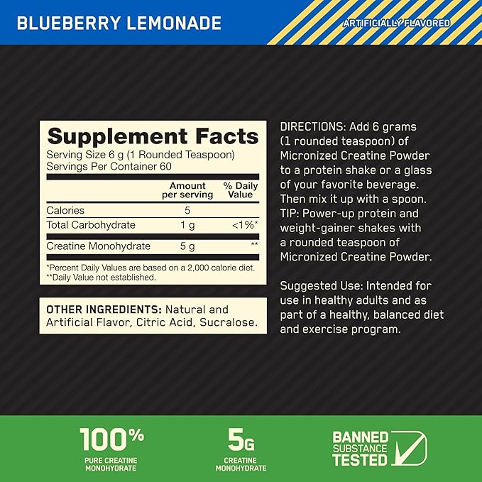 - Flavored Creatine by Optimum Nutrition in a tasty blueberry lemonade flavor